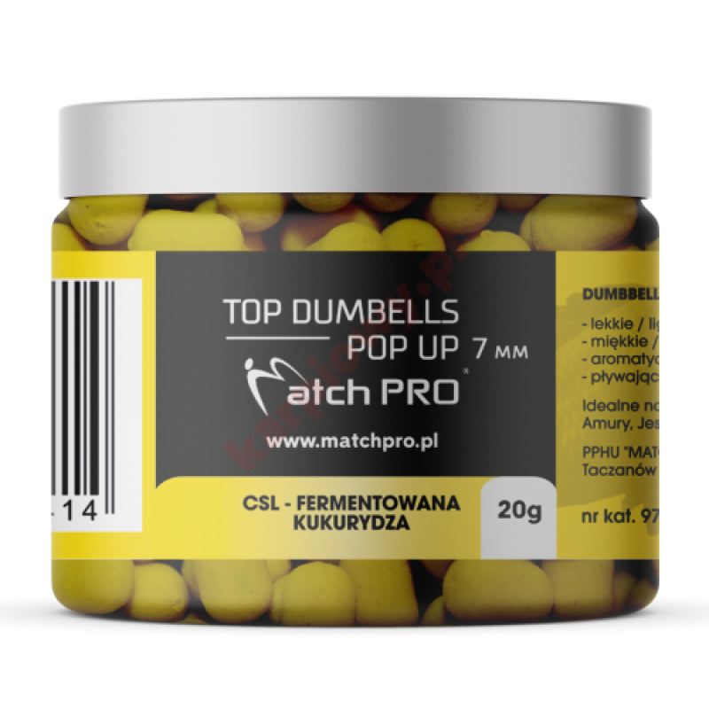 Top Matchpro Dumbells POP UP są bardzo aromatyczne, oddając przez długi czas równomiernie aromat w wodzie co przekłada się na dużą ilość brań.