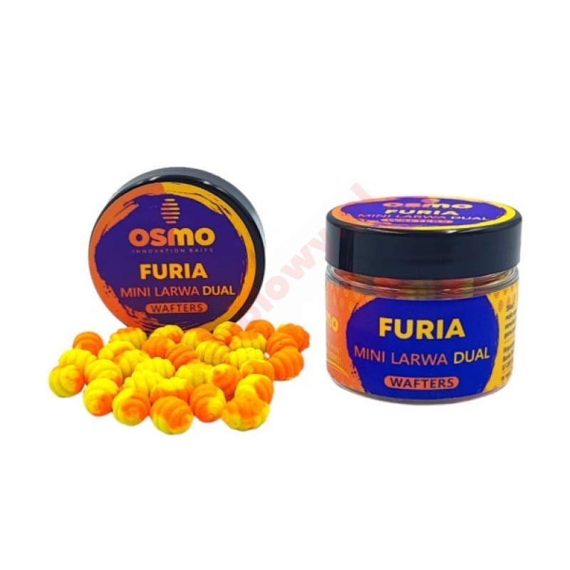 FURIA to wyjątkowa larwa, która łączy w sobie owocowo/rybny zapach , oraz 2 kolory żółty i pomarańczowy.Sprawdzony kształt larwy, ciekawy aromat i idealna praca tej przynęty sprawiają, że żaden karp nie może przepłynąć obojętnie obok niej . Tak jak pozostałe przynęty od OSMO tak i FURIA najlepszą prezentację osiągają na bagnecie z hakami nr 10 i 12.