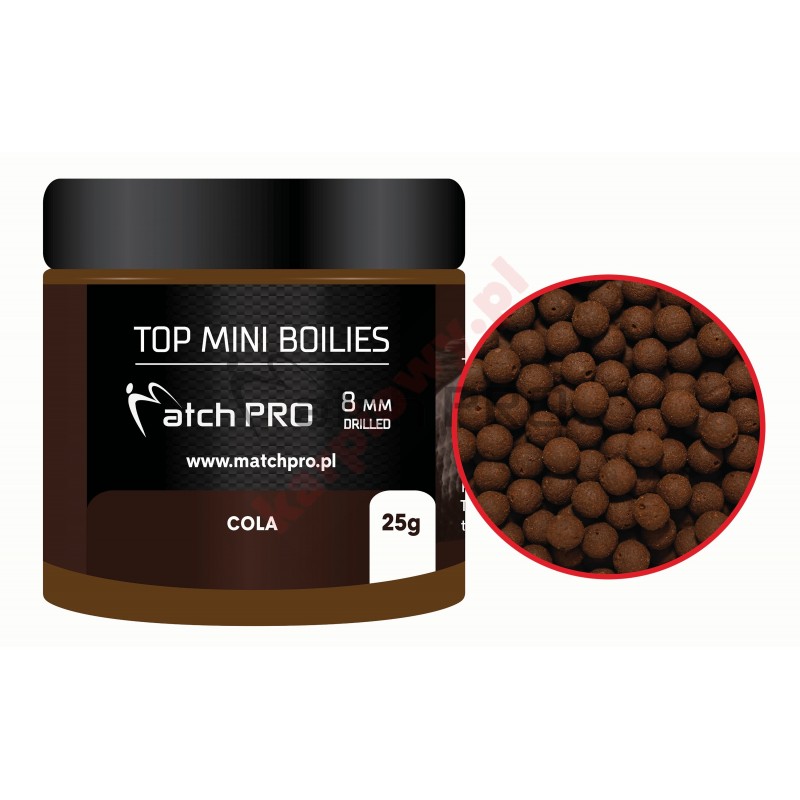 Seria najwyższej jakości przynęt w rozmiarze 8 mm. Długie i intensywne testy tych przynęt pozwoliły dopracować ich skład i właściwości tak aby były bardzo skuteczne w każdych warunkach. To co wyróżnia Matchpro Top Boiles to idealna miękkość, dzięki której ryby pewnie ją pobierają. Wyjątkowa lekkość kulki zapewnia bardzo naturalne zachowanie się w wodzie co niezwykle podnosi skuteczność łowienia. Top Matchpro Bolies są bardzo aromatyczne, oddając przez długi czas równomiernie aromat w wodzie co przekłada się na dużą ilość brań. Dodatkowo kulki posiadają otwór dzięki któremu bardzo łatwo i szybko można założyć przynętę. Różnorodność smaków i kolorów pozwala dopasować się każdemu wędkarzowi do aktualnych warunków panujących na łowisku.