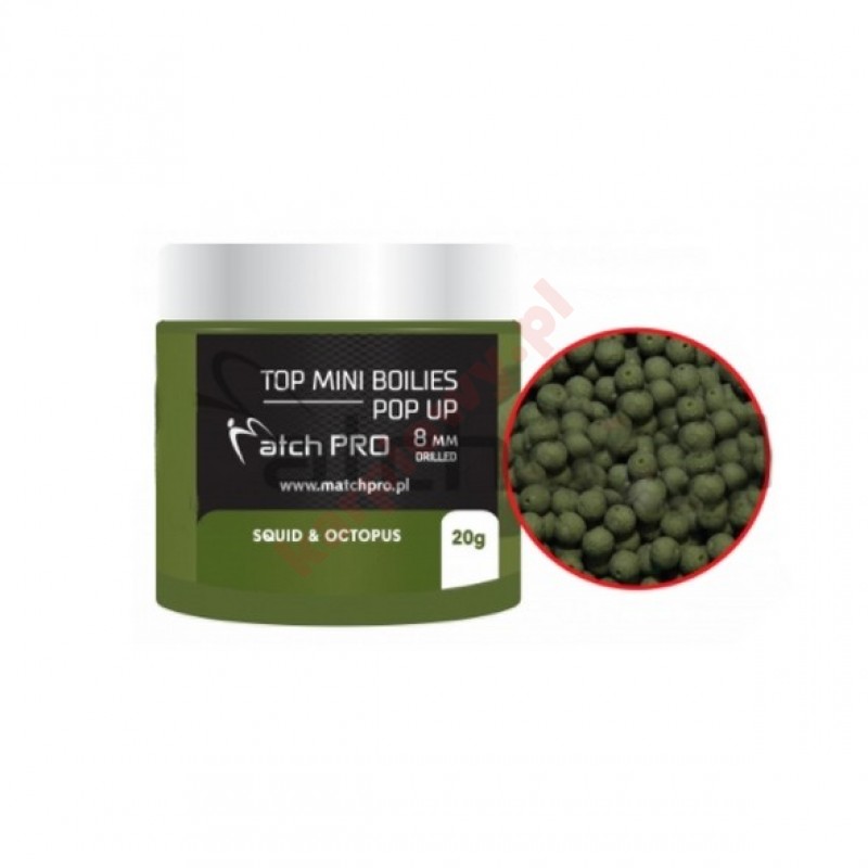 Seria najwyższej jakości przynęt w rozmiarze 8 mm. Długie i intensywne testy tych przynęt pozwoliły dopracować ich skład i właściwości tak aby były bardzo skuteczne w każdych warunkach. To co wyróżnia Matchpro Top Boiles to idealna miękkość, dzięki której ryby pewnie ją pobierają. Wyjątkowa lekkość kulki zapewnia bardzo naturalne zachowanie się w wodzie co niezwykle podnosi skuteczność łowienia. Top Matchpro Bolies są bardzo aromatyczne, oddając przez długi czas równomiernie aromat w wodzie co przekłada się na dużą ilość brań. Dodatkowo kulki posiadają otwór dzięki któremu bardzo łatwo i szybko można założyć przynętę. Różnorodność smaków i kolorów pozwala dopasować się każdemu wędkarzowi do aktualnych warunków panujących na łowisku.
