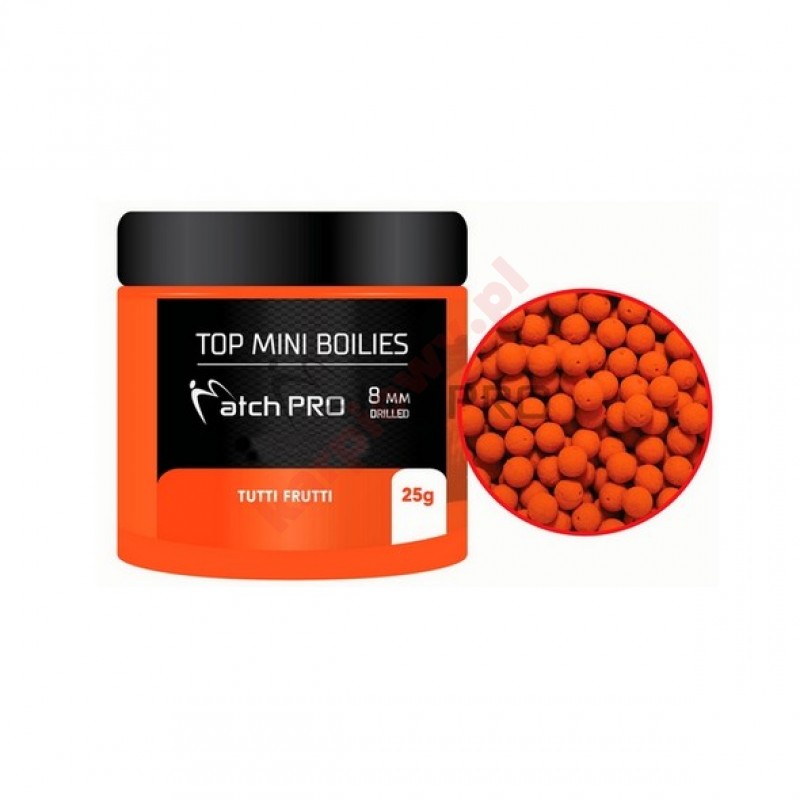 Seria najwyższej jakości przynęt w rozmiarze 8 mm. Długie i intensywne testy tych przynęt pozwoliły dopracować ich skład i właściwości tak aby były bardzo skuteczne w każdych warunkach. To co wyróżnia Matchpro Top Boiles to idealna miękkość, dzięki której ryby pewnie ją pobierają. Wyjątkowa lekkość kulki zapewnia bardzo naturalne zachowanie się w wodzie co niezwykle podnosi skuteczność łowienia. Top Matchpro Bolies są bardzo aromatyczne, oddając przez długi czas równomiernie aromat w wodzie co przekłada się na dużą ilość brań. Dodatkowo kulki posiadają otwór dzięki któremu bardzo łatwo i szybko można założyć przynętę. Różnorodność smaków i kolorów pozwala dopasować się każdemu wędkarzowi do aktualnych warunków panujących na łowisku.