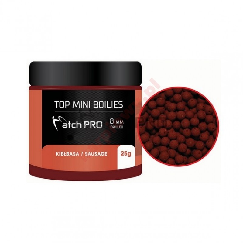 Seria najwyższej jakości przynęt w rozmiarze 8 mm. Długie i intensywne testy tych przynęt pozwoliły dopracować ich skład i właściwości tak aby były bardzo skuteczne w każdych warunkach. To co wyróżnia Matchpro Top Boiles to idealna miękkość, dzięki której ryby pewnie ją pobierają. Wyjątkowa lekkość kulki zapewnia bardzo naturalne zachowanie się w wodzie co niezwykle podnosi skuteczność łowienia. Top Matchpro Bolies są bardzo aromatyczne, oddając przez długi czas równomiernie aromat w wodzie co przekłada się na dużą ilość brań. Dodatkowo kulki posiadają otwór dzięki któremu bardzo łatwo i szybko można założyć przynętę. Różnorodność smaków i kolorów pozwala dopasować się każdemu wędkarzowi do aktualnych warunków panujących na łowisku.