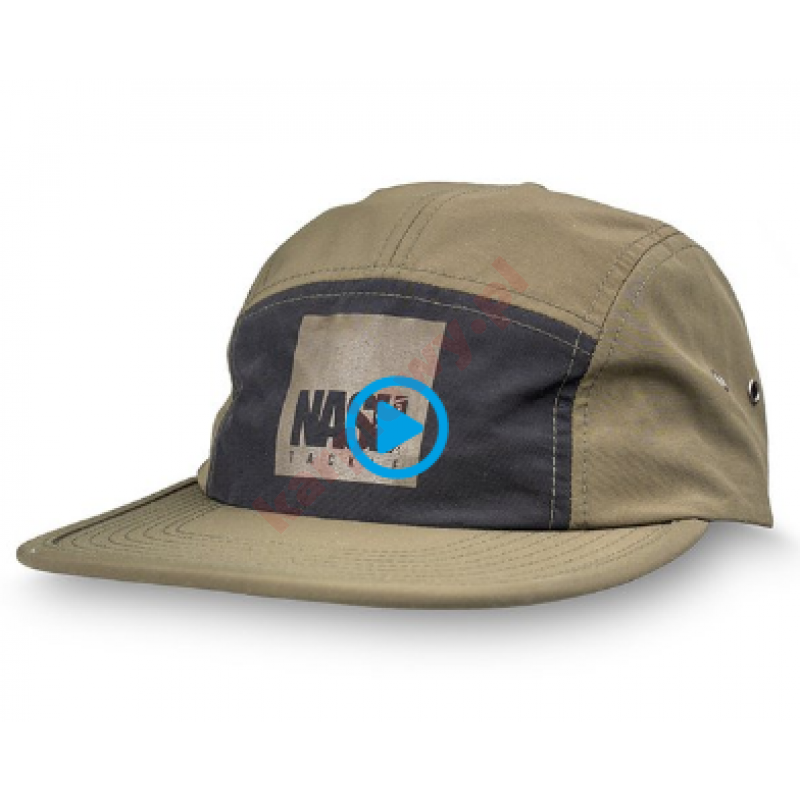 Konstrukcja czapki z 5 paneli, wykonana w 100% z nylonu, z oczkami zapewniającymi przepływ powietrza w upalne dni, wytłoczonym silikonowym logo z rybą Nash oraz iaskiem z regulowaną klamrą.