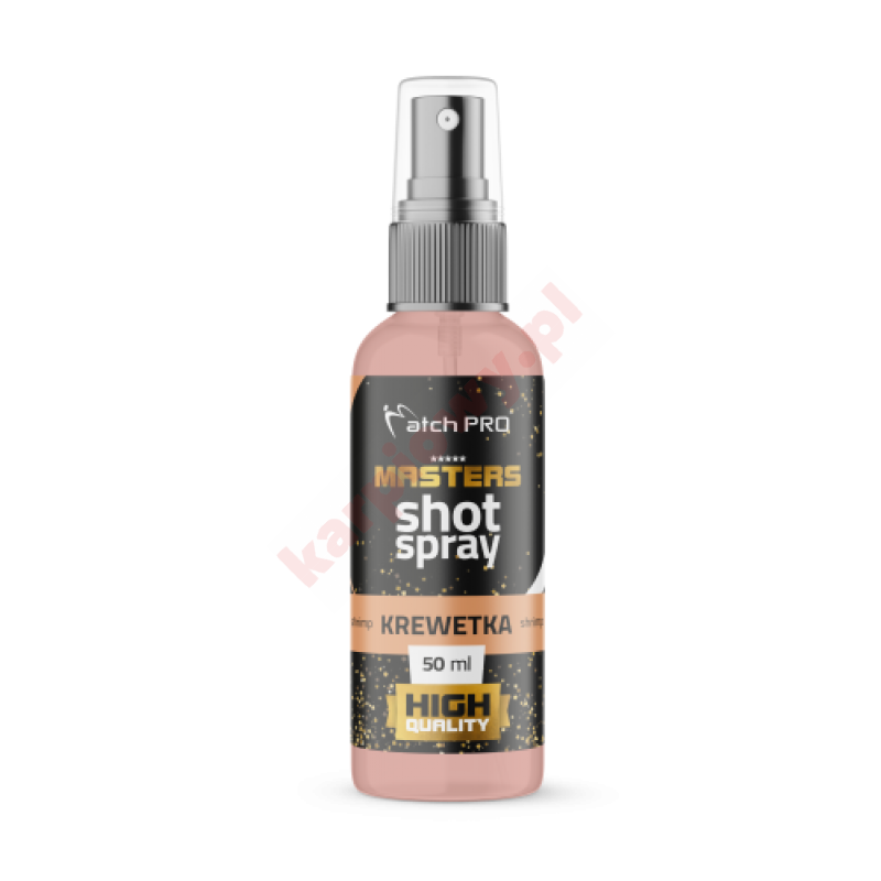 Najwyższej jakości zawodnicza seria atraktorów w sprayu. Bardzo mocno skondensowany naturalny aromat w 27 odmianach pozwala dopasować się do każdego łowiska i preferencji ryb w danym dniu. Masters Shot dedykowany jest do dopalenia koszyka zanętowego, kulek, zanęty, pelletu, przynęt oraz ziaren. Po użyciu tworzy powłokę aromatyczną, która utrzymuje się przez długi czas – wabiąc ryby. Masters Shot jest bardzo skuteczny, gdy chcemy złamać intensywne zapachy występujące w łowisku takie jak (rośliny, muł, małże itp.).