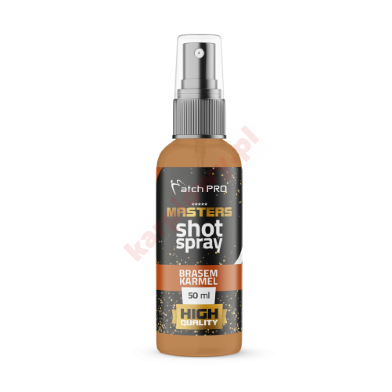 Najwyższej jakości zawodnicza seria atraktorów w sprayu. Bardzo mocno skondensowany naturalny aromat w 27 odmianach pozwala dopasować się do każdego łowiska i preferencji ryb w danym dniu. Masters Shot dedykowany jest do dopalenia koszyka zanętowego, kulek, zanęty, pelletu, przynęt oraz ziaren. Po użyciu tworzy powłokę aromatyczną, która utrzymuje się przez długi czas – wabiąc ryby. Masters Shot jest bardzo skuteczny, gdy chcemy złamać intensywne zapachy występujące w łowisku takie jak (rośliny, muł, małże itp.).