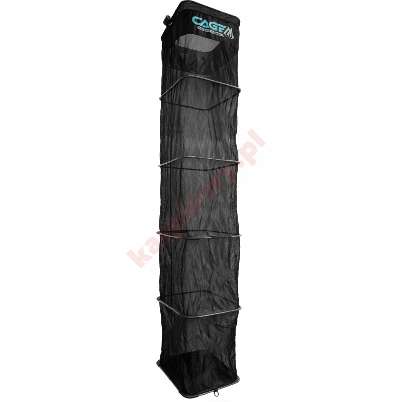 Duża, wyczynowa siatka do przetrzymywania ryb. Prostokątny przekrój lepiej trzyma się dna i ułatwia szybkie wpuszczanie, nawet większych ryb. Szczególnie polecana na zawody feederowe lub spławikowe. W komplecie z torbą transportową.