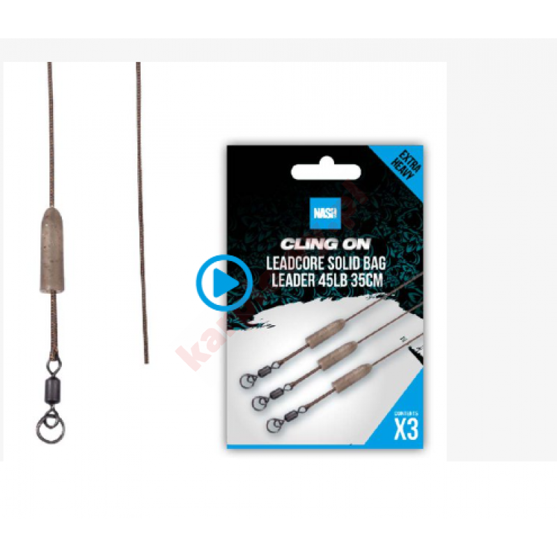 Krótkie odcinki leadcorów Cling On Leadcore Leaders dedykowane do użycia z workami Solid PVA, pozwalające na wcześniejsze przygotowane woreczków i połączenie ich z żyłką główną za pomocą węzła lub pętli. Umieść krętlik (rozm. 8) w ciężarku przelotowym i zabezpiecz całość od góry gumką Tail Rubber.