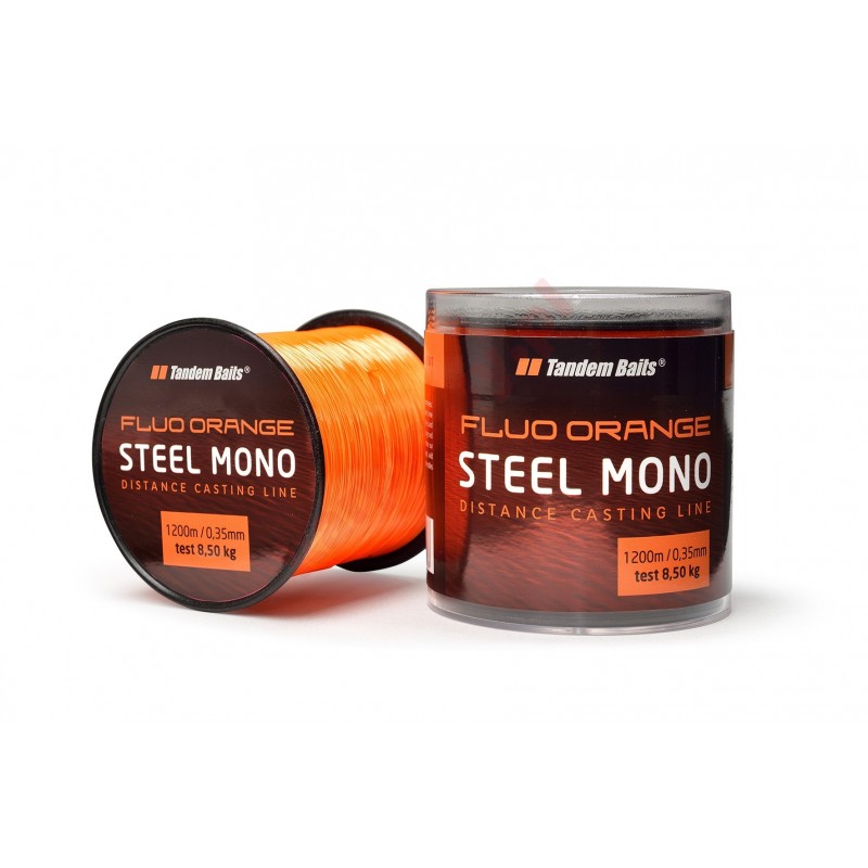 Steel MonoFluo Orage to produkt typu high class – zero kompromisów. Doskonała, barwiona w masie żyłka o bardzo intensywnym fluo pomarańczowym kolorze. Jest miękka i elastyczna, ale zarazem mocna jak stal. Do jej produkcji wykorzystywane sa najnowocześniejsze technologie oraz najbardziej zaawansowane materiały. Gwarantuje to wprost niespotykaną wytrzymałość na zerwanie i znakomitą odporność na przetarcie. Wbudowany, jeszcze skuteczniejszy Shock System uchroni nas przed utratą ryby podczas jej nagłych, dzikich odjazdów. Steel Mono Plus perfekcyjnie układa się na szpuli kołowrotka – bez pamięci kształtu, praktycznie nie skręca się, dzięki czemu umozliwia naprawdę dalekie rzuty. To żyłka dla łowców okazów – prawdziwych zawodowców.
